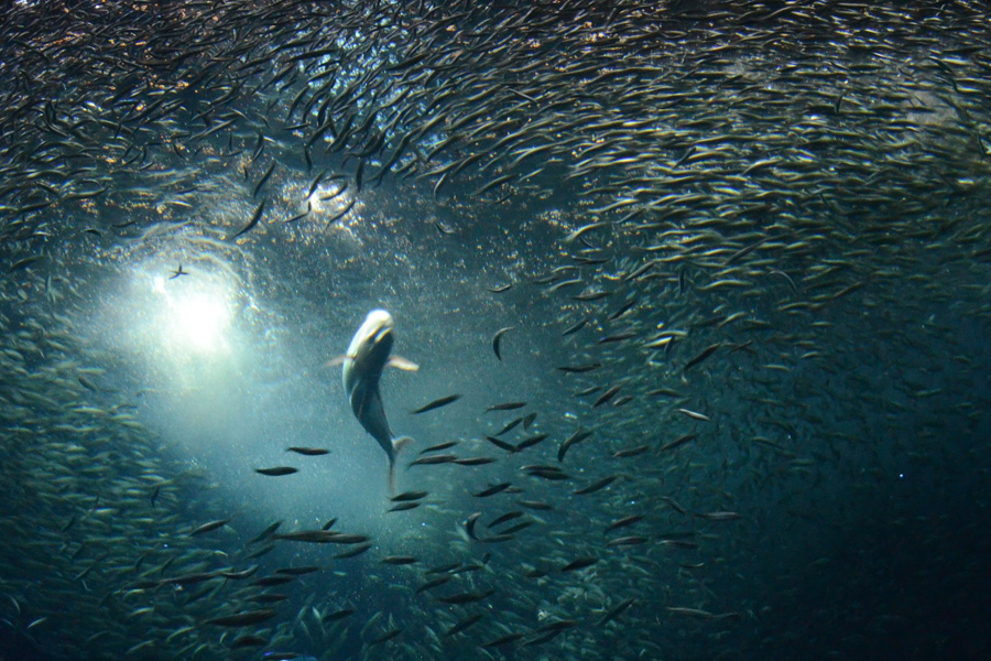 Just because it’s a public aquarium—or zoo for that matter—doesn’t mean that you can’t shoot absolutely world class nature photographs there as has been proven so many times on this page. This picture, taken at the Monterey Bay Aquarium, is straight out of the pages of National Geographic’s greatest hits. The lighting, the break in the action, the alignment of creatures, and the color are breathtaking.