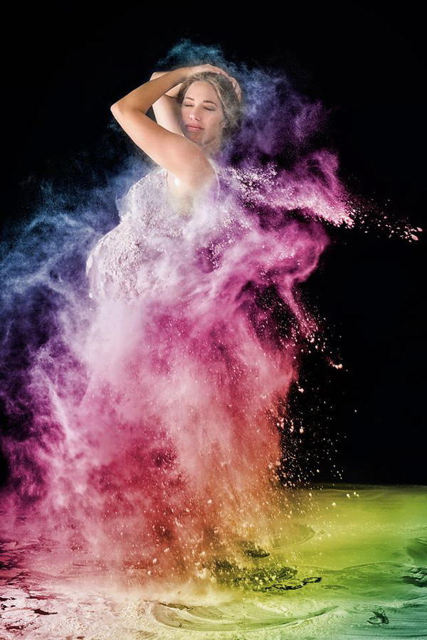 To celebrate her sister's 6th pregnancy they broke out the flour and colored lights and made one big mess of the studio. (It will never be 100% flour-free says Lyndie, but that’s ok; it was all worth it.) The ritualistic nature of the photo touches on fertility, passion, joy—and even a little fear—all in one totally memorable image.