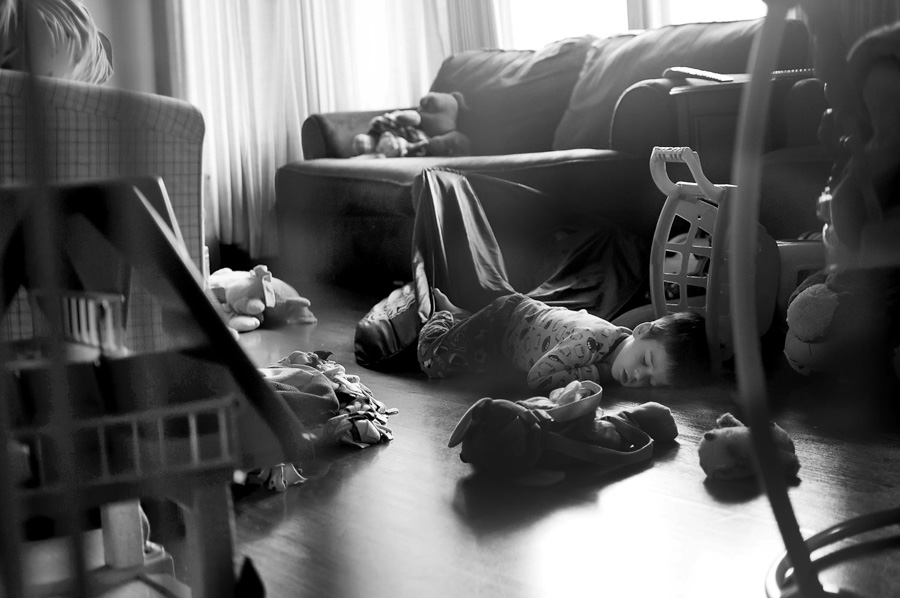 You're tired when you put your head down on a cold, hardwood floor and fall asleep. (There are not many adults that wouldn’t end up on the sofa behind him.) But he had just had enough and he had to recharge the batteries.