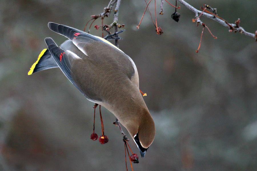 The Cedar Waxwing is also one of my earliest bird memories. I remember my mother calling me to a second floor window in Fargo as a flock happened to stop by our backyard when I was about four or five years old. They were her favorite bird, she told me. I’ve actually told my mother that memory recently and I even mentioned Jo Ann’s bird photographs. (She had no memory of ever telling me how she felt about Cedar Waxwings and was surprised that I could get that far back into the memory banks. 🙂
